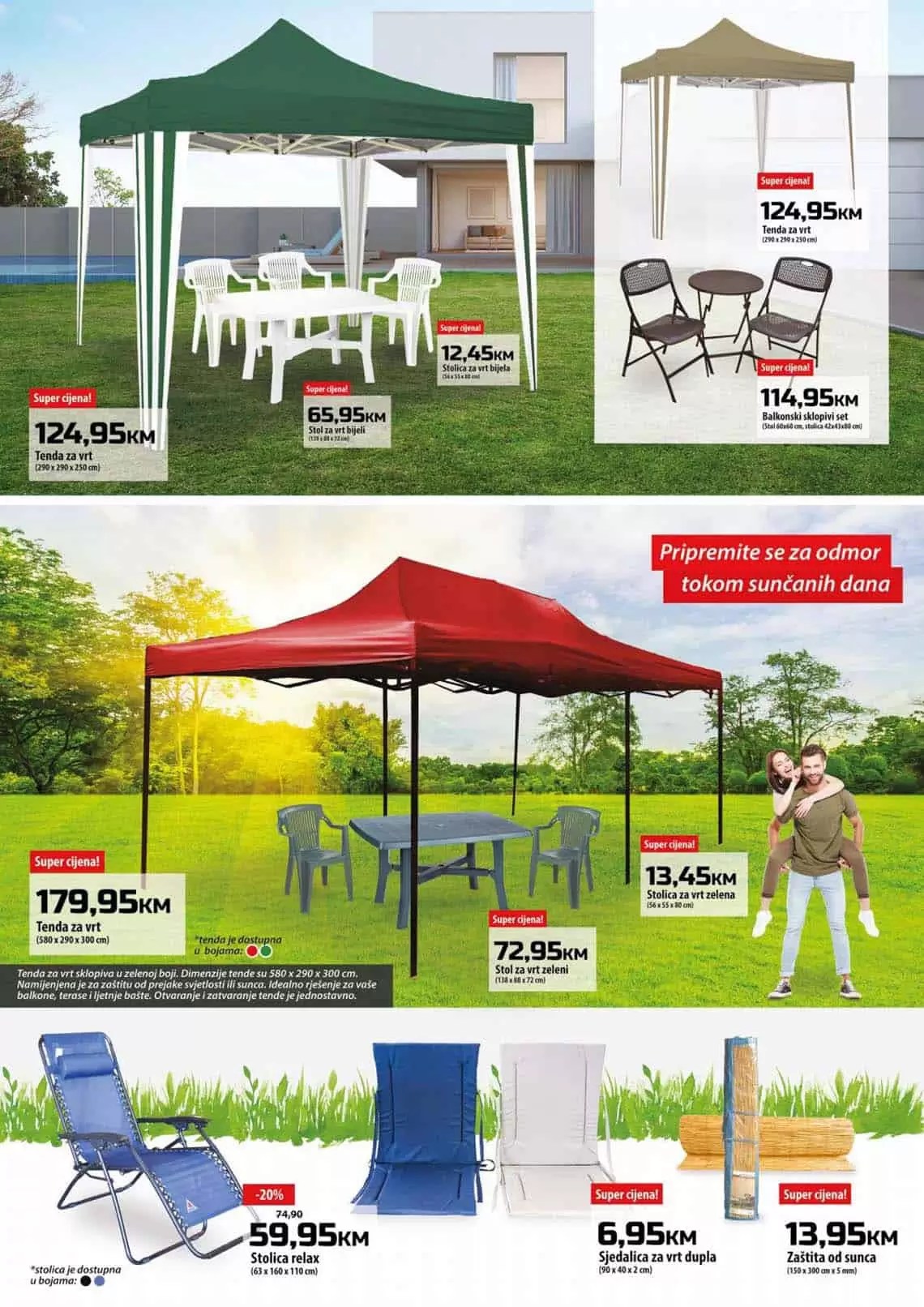 Balkonski set sklopivi antracit classic 154,90 km 114,95 km 3 bingo 34,90 km 21,95 km postolje za suncobran 50x50x8cm 20kg pvc crno 21,90 km 17,95 km ljuljačka za vrt 80x200cm platnena 3 bingo 59,90 km 49,95 km sto za vrt 70x70x77cm više boja 109,90 km 89,95 km sto za vrt 115x70x72,50cm više boja 3 bingo 39,90 km 24,95 km stolica za vrt …. Kada je lijepo vrijeme, mnogi od nas svoje dnevne boravke rado zamjenjuju terasom ili dvorištem. Idealno je vrijeme za kupovinu! Kada je lijepo vrijeme, mnogi od nas svoje dnevne boravke rado zamjenjuju terasom ili dvorištem.